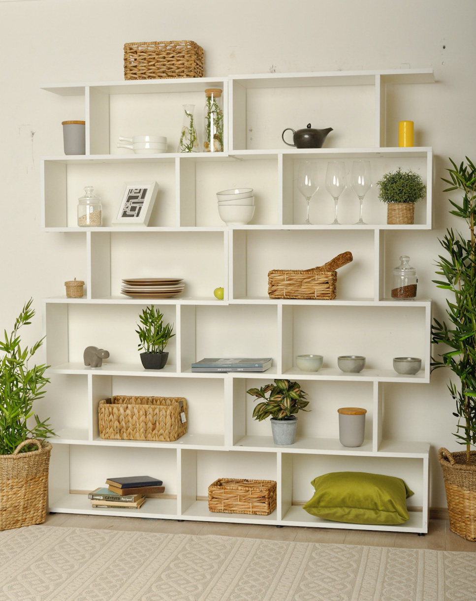 Set состоит из двух стеллажей Wally, которые можно использовать как вместе, поставив рядом, так и по отдельности друг от друга. Wally - это удобная система для размещения книг или декора. Так же можно использовать стеллажи для зонирования любых интерьеров.