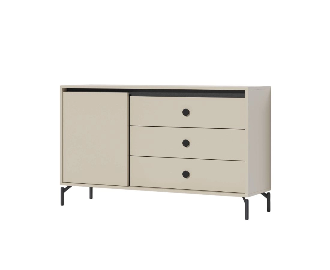 Изящный комод Маршал прекрасно подойдёт для гостиной или спальни. Оснащён тремя выдвижными ящиками и дверцей.