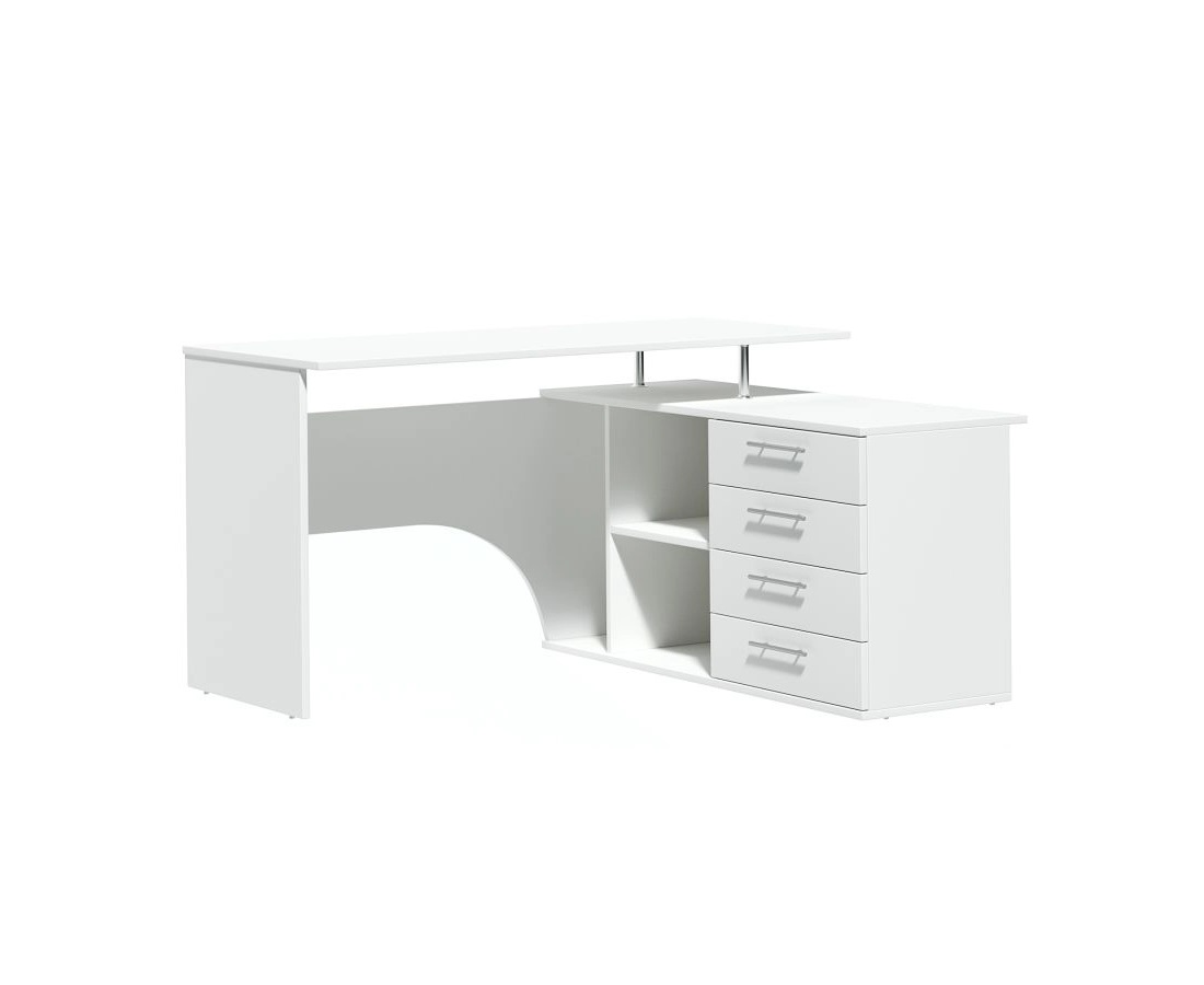 Угловой компьютерный стол с двумя рабочими поверхностями. Основная столешница имеет ширину 1400 мм, позволяя разместить компьютер и рабочие материалы. На малой столешнице – 1200 мм, удобно держать под рукой книги, папки, канцерярию, принтер.